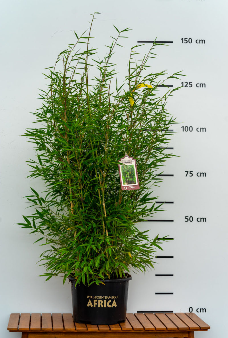 Fargesia Maasai® ist eine beeindruckende, säulenartig straff aufrecht wachsende Bambussorte, die keine Wurzelausläufer bildet. Mit einer Endhöhe von etwa 3 bis 5 Metern – je nach Standort – eignet sie sich hervorragend für hohe, blickdichte Hecken und schafft so einen natürlichen Sichtschutz. Dank des schmalen, kompakten Wuchses bleibt Maasai® platzsparend und wirkt zugleich äußerst elegant.